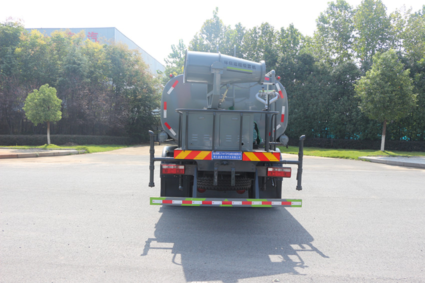 噴灑裝置:三彎前沖、小鴨嘴側噴、后灑、高壓水炮,車載灑水泵可自吸自排。帶消防栓接口。