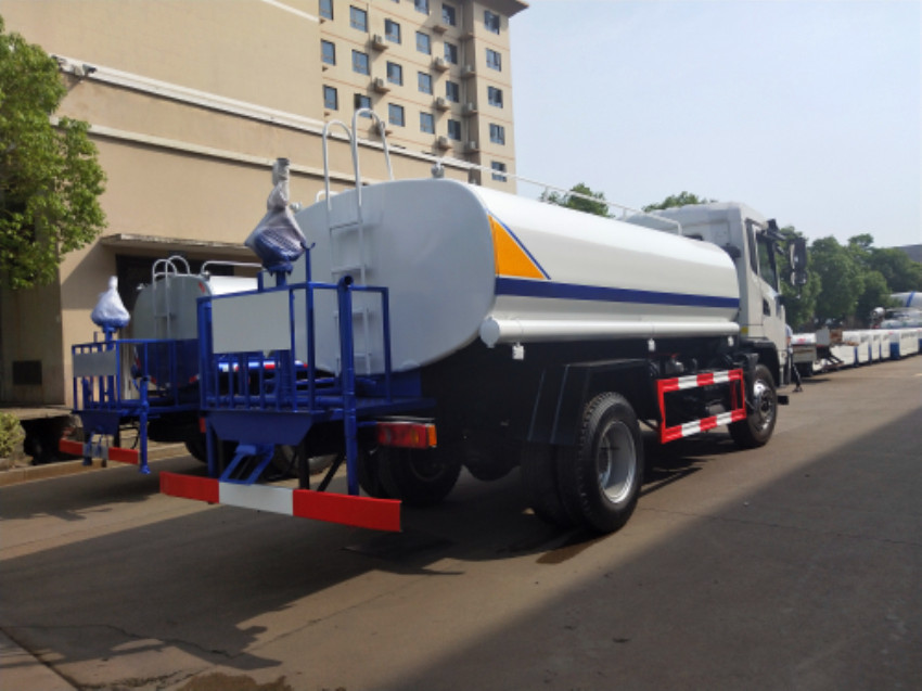 15噸灑水車該車主要用于路面沖洗,樹木,綠化帶沖洗,主要專用裝置為水罐及泵,有效容積11.2立方米;罐體外形尺寸(長×長軸×短軸)(mm):4900×2270×1470;側(cè)防后防采用Q235材質(zhì)焊接連接在大梁上.后防護(hù)斷面尺寸(mm):100×50.后防離地高為500mm,ABS系統(tǒng)生產(chǎn)廠家,型號:焦作博瑞克控制技術(shù)有限公司,J ABS.選裝新型后工作平臺,罐體側(cè)上方,車輛后下方,車輛前下方噴嘴樣式,方炮筒及罐體上護(hù)欄,