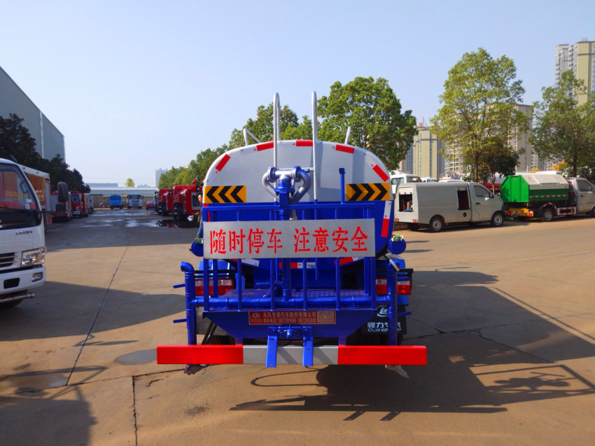國(guó)五東風(fēng)多利卡灑水車,罐體容積5立方米,該車具有免征公告(可免交車輛購置稅)。采用武鋼4mm優(yōu)質(zhì)碳鋼板一次卷壓成型,完全做到無縫成型。罐體內(nèi)設(shè)多道防波隔板,采用高壓氣體試漏檢測(cè),使罐體具有強(qiáng)度高,重心穩(wěn),車輛運(yùn)載安全平穩(wěn)。罐體外表為烤漆,罐體及各保險(xiǎn)杠貼紅白色視覺反光條,罐體兩側(cè)噴“綠化灑水車”字樣(可按您的要求噴繪字樣),罐體顏色出廠為上白下綠或上白下藍(lán)(可按您的要求噴繪顏色)。