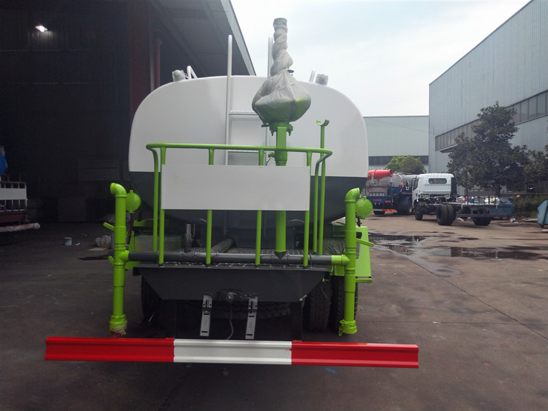 東風多利卡8噸灑水車配備國內大功率灑水車專用水泵,可自吸自排,引水時間<15min,流量40m3/h,揚程35米。東風多利卡灑水車其它專用部分標配為:前沖、后灑、側噴、后工作平臺、360度可調節綠化水炮,水泵垂直吸程≧7米,前沖灑水寬度≧14米,綠化水炮射程≧35米,自流閥、濾網、消防接口(可連接消防栓取水,可作應急消防用)。罐前量管(觀察罐內水位)、罐后爬梯、罐上罐口帶簡易護欄、罐側雙炮筒、6米長4寸鋼絲塑膠管兩根,罐體表面雙層油漆工藝,防銹、耐腐蝕,其余有廠家標配。東風8噸灑水車可選擇加裝加裝藥盤、氣動控制閥、噴藥設備、罐內防腐等。