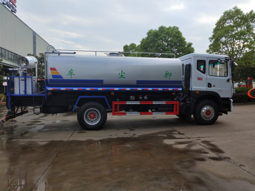 抑塵車,降塵車:具備灑水車功能,在噴灑作業時可實現360度旋轉,后平臺高炮可同時進行旋轉,并可電子遙控操作,主要用來壓制灰塵,消除城市霧霾,也是煤炭裝運點噴灑抑塵固化劑裝置中的一種,用于鐵路煤炭運輸煤揚塵污染防治,也廣泛用于其它散裝物料運輸過程防揚塵污染以及渣料場、儲煤場、建筑工地、汽車運煤揚塵、固沙、鋼鐵建材、水泥、企業各種露天料場生態護坡等方面。也適用于園林綠化部門行道樹、苗圃、綠化帶、公園草木植物及農林植物、森林樹木、草原植被的噴藥防治病蟲害,也可用于車站、碼頭、劇院等公共場所和畜牧養殖場、垃圾場以及各種路面的清潔消毒,防止疫情傳染,還可用于沖洗、灑水作業以及應急消防