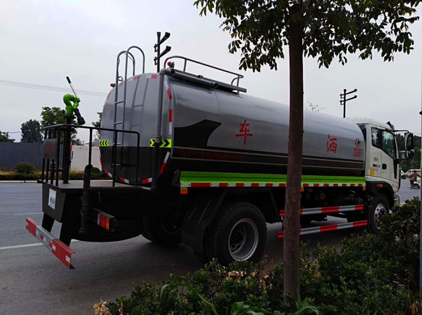 福田15噸灑水車罐體結構,罐體為橢圓形或方形,用鋼板制成,整車罐體水倉為 2-3 室,中間隔板下端有通孔,倉內隔板具有防波作用。以減低汽車行駛時罐內液體的沖擊。