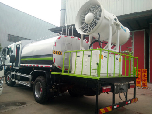 抑塵車吸程≧7米,灑水寬度≧14-16米,射程≧25-40米,引水時(shí)間<5min,流量60m3/h。前沖(噴)、后灑、帶側(cè)噴(花灑)、帶后工作平臺(tái)、平臺(tái)上安裝綠化灑水高炮(炮噴射形狀可調(diào)節(jié):直沖、大雨、中雨、毛毛雨、霧狀、可連續(xù)調(diào)節(jié),360°旋轉(zhuǎn)),配消防接口,自流閥,濾網(wǎng),帶自吸自排功能。配備大功率專用灑水泵,泵可自吸自排,安裝過濾網(wǎng),帶消防接口,可通過消防栓進(jìn)水,帶自流閥,此車尾部加裝大功率農(nóng)藥噴灑炮,噴灑狀態(tài)霧狀,有效射程15-45米,外部平臺(tái)帶獨(dú)立的機(jī)組。