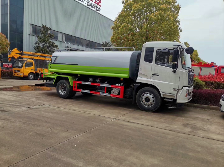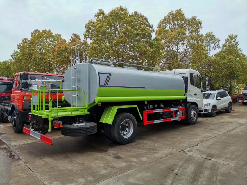 專(zhuān)用配置:罐體容積約12~14立方米,鋼板為4mm碳鋼Q235材質(zhì),前沖、后灑、側(cè)噴、后平臺(tái)帶綠化灑水炮,灑水炮可全方位旋轉(zhuǎn),可連續(xù)調(diào)成直沖狀、大雨、小雨、毛毛雨;前封頭帶水位計(jì),后平臺(tái)主管路帶1寸澆花接口,后爬梯,帶1個(gè)消防接頭,帶1個(gè)自流閥,1個(gè)過(guò)濾裝置。