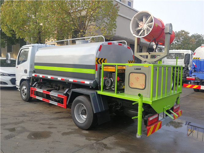 國六多利卡五方霧炮灑水車,軸距3308,朝柴102馬力,萬里楊6檔,7.00R鋼絲胎,斷氣剎,動轉,離合助力,ABS防抱死系統,上裝采用優質碳鋼板,罐體4mm,前沖,后撒,測噴