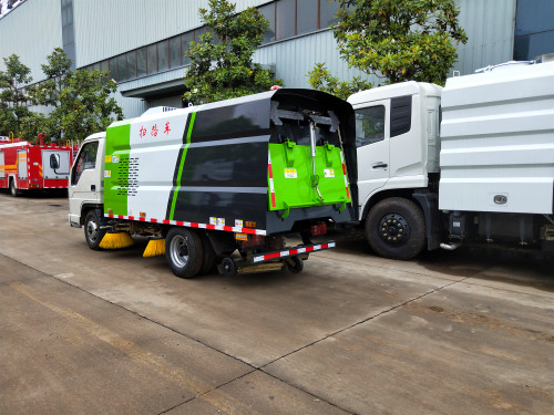 1、采用吸掃結合的方式收集垃圾,濕式除塵、電液控制,液壓傾翻卸料的作業方式對路面進行清掃作業。