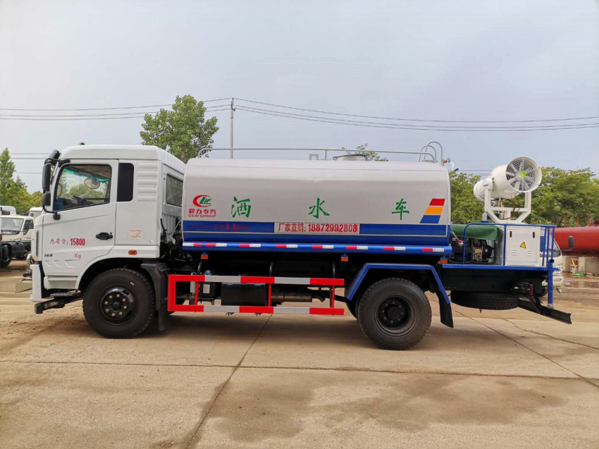 灑水車吸程≧7米,灑水寬度≧14-16米,射程≧25-40米,引水時間<5min,流量60m3/h。前沖(噴)、后灑、帶側噴(花灑)、帶后工作平臺、平臺上安裝綠化灑水高炮(炮噴射形狀可調節(jié):直沖、大雨、中雨、毛毛雨、霧狀、可連續(xù)調節(jié),360°旋轉),配消防接口,自流閥,濾網(wǎng),帶自吸自排功能。配備大功率專用灑水泵,泵可自吸自排,安裝過濾網(wǎng),帶消防接口,可通過消防栓進水,帶自流閥,此車尾部加裝大功率農(nóng)藥噴灑炮,