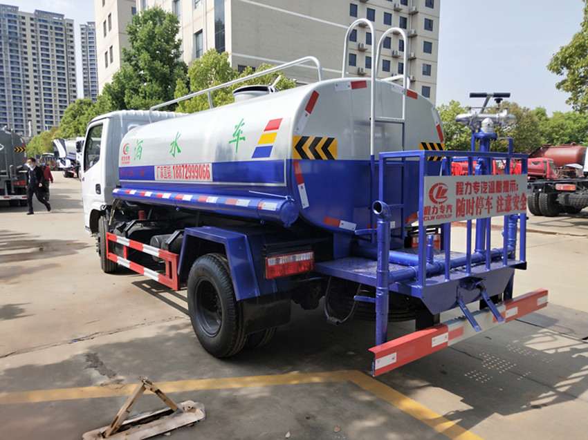 3、東風多利卡灑水車(6噸—8噸)該車采用東風朝陽120馬力柴油發動機和東風康明斯140馬力柴油發動機,7.50-16輪胎,帶方向助力,帶增壓,不帶空調,汽剎,5檔變速箱,2.2噸前橋, 5噸后橋,整車外形尺寸:長×寬×高(mm) 6995×2300×2550,總質量(kg):11495,額定質量(kg):4300,整備質量(kg): 7000,該車罐體有效容積:6噸-8噸,帶免征公告。