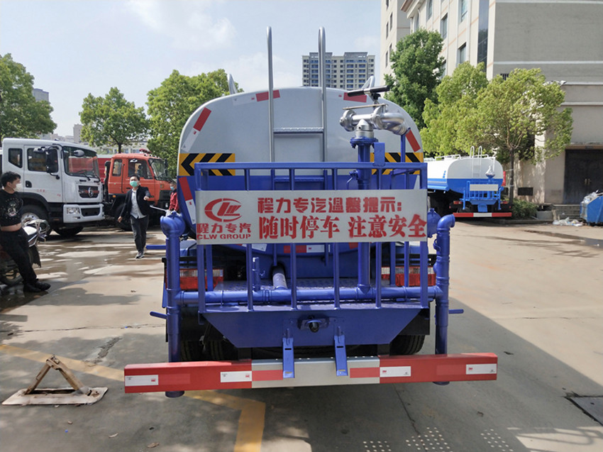灑水車的功能配置:標準配置灑水車主要裝備有:前沖(沖洗公路路面)、后灑(公路路面養護)、側噴、高位側花灑(路邊綠化帶優化);后工作平臺高壓水炮,可調節成柱狀,射程≥28m;也可調節成霧狀,射程≥30米,水泵自吸高度:≤7m,灑水寬度:≥15m。側防護網,自流閥,消防接頭。灑水車水泵為常壓水泵,功能可以抽水、排水。另外根據用戶要求,可加消防泵、噴霧機、農藥卷盤、農藥柱塞泵。罐內可以做防腐防銹、電磁閥氣動閥自動放水等先進設施,以滿足不同用戶需求。