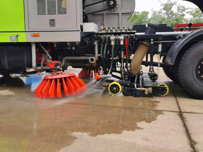 二、采用“中置兩立掃+中置寬吸嘴(內置高壓水噴桿)+左右高壓側噴桿”的結構。