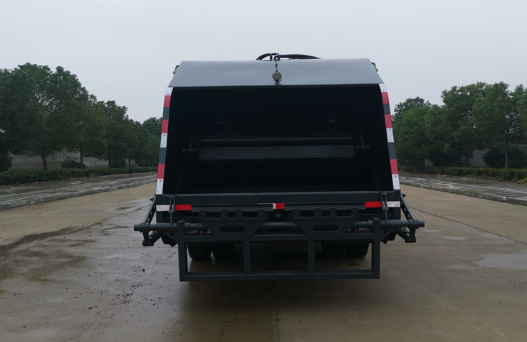 新款平板或弧形箱體,式樣美觀,箱體全滿焊,5-8方箱體厚度邊4底4,10-12方邊4底5,12方以上邊5底5,采用國內著名品牌配件,揚州中煤或合肥長源油泵和液壓多路換向閥、博利或海普瑞斯油缸,杰特高密度液壓油管,帶掛桶或三角斗翻轉進料,翻轉機構可以翻轉國標120、240垃圾桶,帶壓縮推板,后蓋帶液壓鎖緊。PLC一鍵操控系統,可駕駛室內和室外雙電控操作,方便實用。尾部帶密封橡膠墊,污水收集箱,可防污水滴漏二次污染。