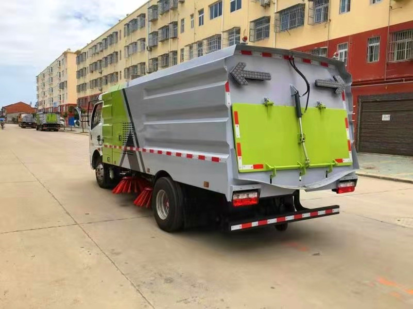 我公司生產(chǎn)的掃路車采用品牌二類底盤改裝,副發(fā)動機為日本五十鈴技術(shù)的柴油發(fā)動機或美國康明斯技術(shù)的柴油發(fā)動機,清掃裝置及吸嘴布置方式采用“中置四盤刷—后置吸嘴”的結(jié)構(gòu)布置形式,副發(fā)動機與風(fēng)機采用離心式自動離合器連接,能保證副發(fā)動機空載啟動;清掃裝置具有遇障自動避讓保護(hù)功能和自動復(fù)位功能。掃盤遇到障礙物后自動回縮,該功能有效地解決了清掃裝置易碰損的問題。全浮動吸嘴,具有清掃寬度大,清掃效率高的特點,并有利于清掃裝置與吸嘴的調(diào)整和維護(hù)。垃圾箱內(nèi)膽采用雙層結(jié)構(gòu),內(nèi)層為全不銹鋼;掃盤上部裝有不銹鋼噴霧降塵系統(tǒng),有效地降低了揚塵帶來的二次污染;車箱前部設(shè)有手壓泵自動應(yīng)急系統(tǒng);尾部有 LED 箭頭燈警示裝置;開、關(guān)垃圾箱門及垃圾傾倒都可在駕駛室內(nèi)操作,安全、方便、可靠。該掃路車具有清掃速度快、揚塵小、能耗低等特點,廣泛用于城市道路、公路、機場、碼頭、橋梁、廣場、小區(qū)的機械化清掃作業(yè)。