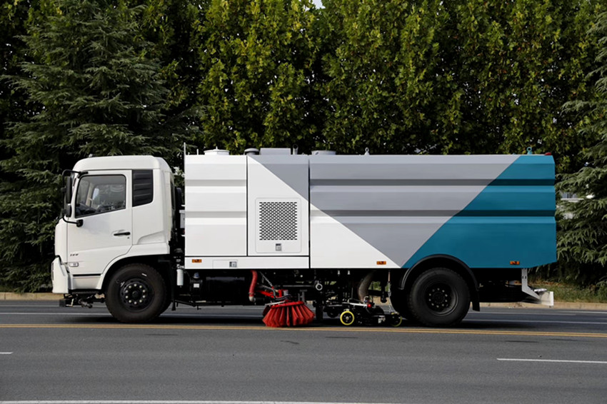 8)采用先掃,后沖刷,再吸收的工作方式,能將垃圾及污水一次清掃、沖刷、吸收干凈。路面作業(yè)后無塵土,無積水;