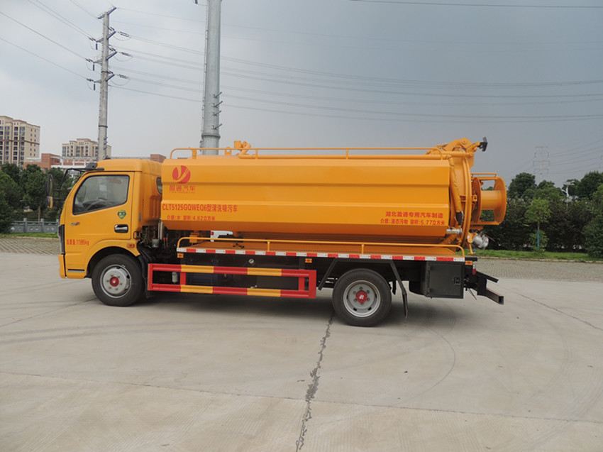 東風清洗吸污車吸污部分:吸污罐采用6mm武鋼碳鋼制作,容積約7方,帶視污窗,洗手裝置,安裝有防溢閥,SK-12水環(huán)式真空泵(選裝油泵),帶8米4寸吸污鋼絲橡膠管,罐尾配100mm排污球閥,罐體帶液壓舉升系統(tǒng),后蓋液壓打開、關閉,帶自卸功能,可進行加壓強排。罐體內(nèi)帶隔襯板,防止吸污罐體變形。