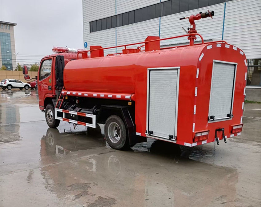 5方消防灑水車 配備大功率專用灑水泵,泵可自吸自排,安裝過濾網,帶消防接口,可通過消防栓進水,帶自流閥,隨車選裝20米綠化卷盤,可噴灑農藥,罐體金屬漆。罐體有橢圓和方圓罐兩種,可根據用戶的要求定做