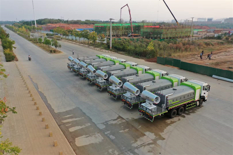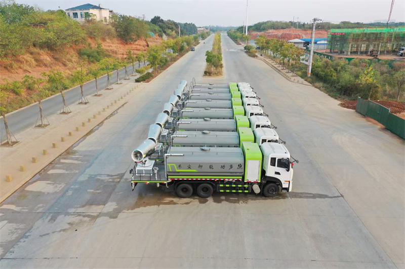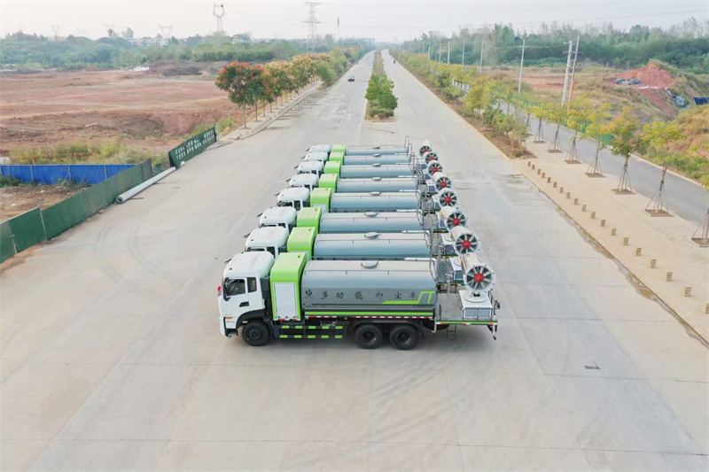 一. 產(chǎn)品簡(jiǎn)述 抑塵車又稱為綠化噴灑車、多功能灑水車、園林綠化灑水車。抑 塵車適合于各種路面沖洗,樹木、綠化帶、草坪綠化,道路、廠礦企業(yè) 施工建設(shè),高空建筑沖洗。抑塵也可以作為運(yùn)水車使用,最常見的車 型有綠化噴灑車、多功能灑水車、綠化灑水車幾大類。 我公司產(chǎn)品標(biāo)配前噴(鴨嘴)、后沖、后灑、側(cè)噴、后置式工作 平臺(tái),平臺(tái)上配置綠化水炮(可 360°旋轉(zhuǎn),既可以調(diào)成柱狀,也可 以調(diào)成霧狀,更可以調(diào)成直沖狀、大雨、中雨、小雨、毛毛雨),配 備優(yōu)質(zhì)大功率專用灑水泵(可自吸自排,可從河里或池塘抽水到罐體), 取力器,雜物過(guò)濾網(wǎng),消防接口,自流球閥系統(tǒng)、取力器、球閥、濾網(wǎng) 均為國(guó)家標(biāo)準(zhǔn)產(chǎn)品,主管道加粗,法蘭墊、法蘭盤加厚,大通徑球閥。 整體具備性能優(yōu)良安全可靠、效率高、流量大、維修方便等特點(diǎn)。