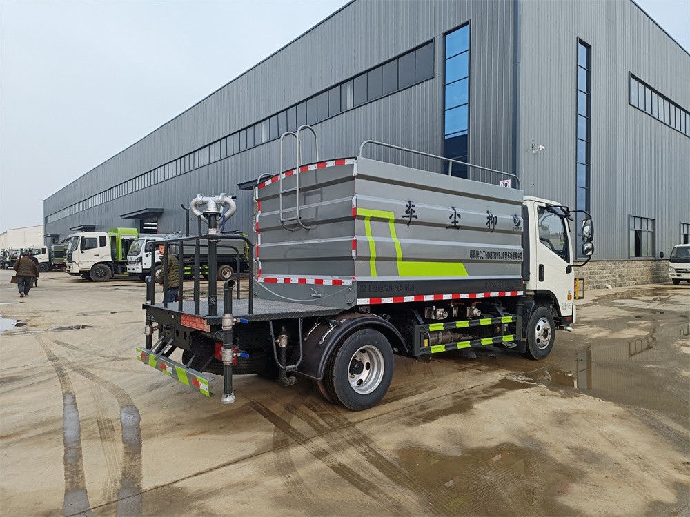 福田7方藍牌抑塵灑水車上裝配置: 1、罐體約為 7 方,可加裝 30 型霧炮 2、邊燈帶電,罐體尾部上方標配 2 個紅色示寬燈, 3、標配前噴為鴨嘴直沖,標配后沖,用戶可根據自己的需求,來調 整對沖位置。 4、花紋防滑平臺,炮筒后蓋為定制型螺栓卡扣, 5、前噴、后沖、后灑、側噴,綠化高炮開關球閥均采用 50 大通經 不銹鋼球閥, 6、新式軸承式水炮,更加耐用, 7、40-50 型水泵, 8、防腐法蘭墊片, 9、鋁制后灑,不易炸開 10、罐體自動焊(美國林肯焊機及電源),拼板自動焊接,封頭環 縫焊接,無氣孔,焊縫美觀。 11、側護網、后保險杠、均為螺栓連接,方便拆卸,維修方便。 12、塑料擋泥板,替代鐵擋泥板,更加輕便,用螺栓連接,方便拆 卸。 13、前部、后部主管連接處為 6 孔圓法蘭,不易沖墊
