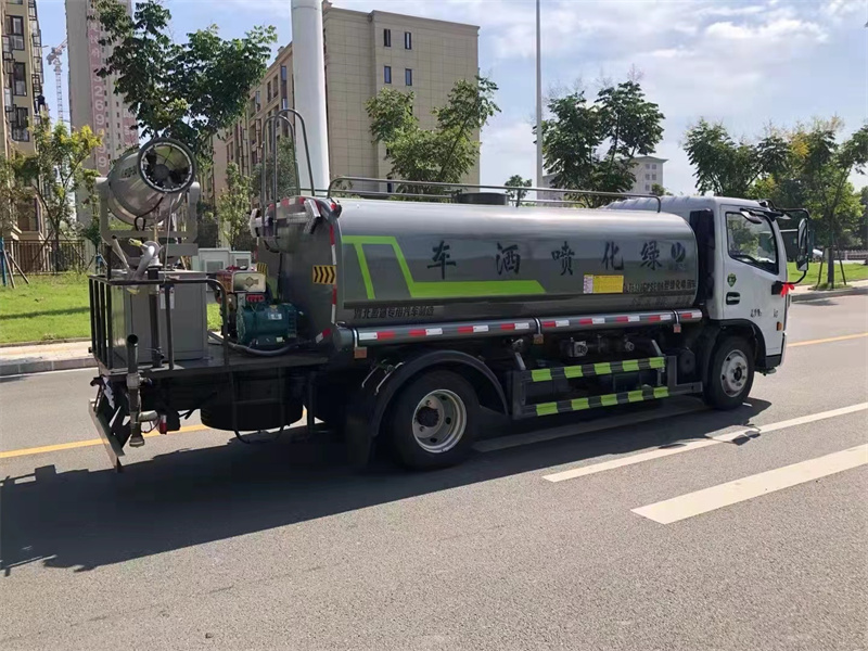 東風多利卡9方抑塵灑水車罐體約為 9 方,可加裝 30 型霧炮 2、邊燈帶電,罐體尾部上方標配 2 個紅色示寬燈, 3、標配前噴為鴨嘴直沖,標配后沖,用戶可根據自己的需求,來調 整對沖位置。 4、花紋防滑平臺,炮筒后蓋為定制型螺栓卡扣, 5、前噴、后沖、后灑、側噴,綠化高炮開關球閥均采用 50 大通經 不銹鋼球閥, 6、新式軸承式水炮,更加耐用, 7、40-50 型水泵, 8、防腐法蘭墊片, 9、鋁制后灑,不易炸開 10、罐體自動焊(美國林肯焊機及電源),拼板自動焊接,封頭環 縫焊接,無氣孔,焊縫美觀。 11、側護網、后保險杠、均為螺栓連接,方便拆卸,維修方便。 12、塑料擋泥板,替代鐵擋泥板,更加輕便,用螺栓連接,方便拆 卸。 13、前部、后部主管連接處為 6 孔圓法蘭,不易沖墊