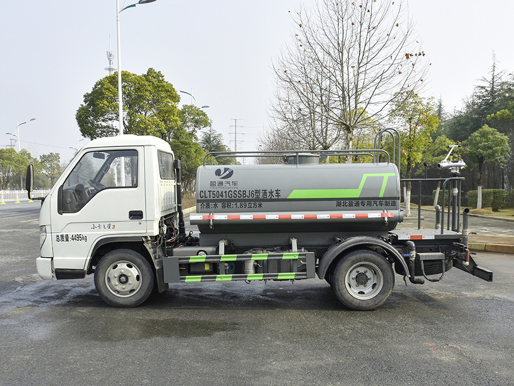 福田小卡 2.2 方灑水車產品配置 1.底盤配置: 發動機全柴 115 馬力,軸距 2850,萬里揚 5 檔箱,6.50 鋼絲胎、 動力轉向、離合助力、TBOX、油剎,電動玻璃2.上裝配置: 1、罐體約為 2.2 方, 2、邊燈帶電,罐體尾部上方標配 2 個紅色示寬燈, 3、沖孔平臺(承載能力加強),炮筒后蓋為定制型螺栓卡扣, 4、后對沖、后灑、側噴,綠化高炮開關球閥均采用 50 大通經不銹 鋼球閥, 5、新式軸承式水炮,更加耐用, 6、40-50 型水泵, 7、防腐法蘭墊片, 8、鋁制后灑,不易炸開 9、罐體自動焊(美國林肯焊機及電源),拼板自動焊接,封頭環縫 焊接,無氣孔,焊縫美觀。 10、側護網、后保險杠、均為螺栓連接,方便拆卸,維修方便。 11、塑料擋泥板,替代鐵擋泥板,更加輕便,用螺栓連接,方便拆 卸。 12、前部、后部主管連接處為 6 孔圓法蘭,不易沖墊