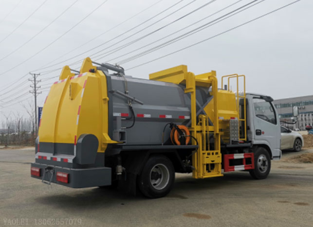 東風(fēng)小多利卡餐廚垃圾車(chē)改裝容積4~5m3,罐體厚度4.75mm,配備掛桶提升機(jī)構(gòu),后蓋液壓開(kāi)啟,罐體可以舉升自卸,尾部帶自流閥。