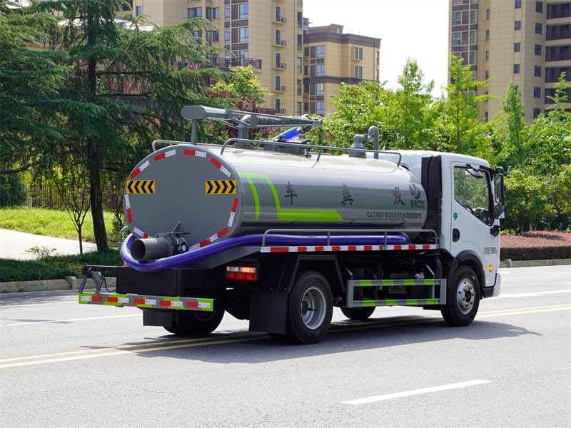 吸糞車,主要應用到化糞池,污水溝和下水道等環境下清理清潔工作的專用車 輛,與灑水車,垃圾車,并稱為三大環衛車型。罐體頂部開設有空氣孔,吸排孔。空 氣孔與水氣分離器相通是空氣出入罐體的通道。入孔平時密封著維修時可以打開,吸 排孔上連吸糞膠管下連虹吸道糞液出入罐體的通道。 罐體兩側中部設有走臺箱,平時用于擱置吸糞膠管,維修時站立。前封頭設有觀 察量管,便于監視裝載量,防止超載。底部設有清洗孔,平時密封著,清洗罐體時, 可打開清洗孔蓋,讓污水自流排出。 由于吸糞膠管始終浸沒于液面上,罐體內的空氣被抽吸后,因其得不到補充而 越來越稀薄,致使罐內壓力低于大氣壓力,糞液即在大氣壓力的作用下,經吸糞膠管 吸入罐體。