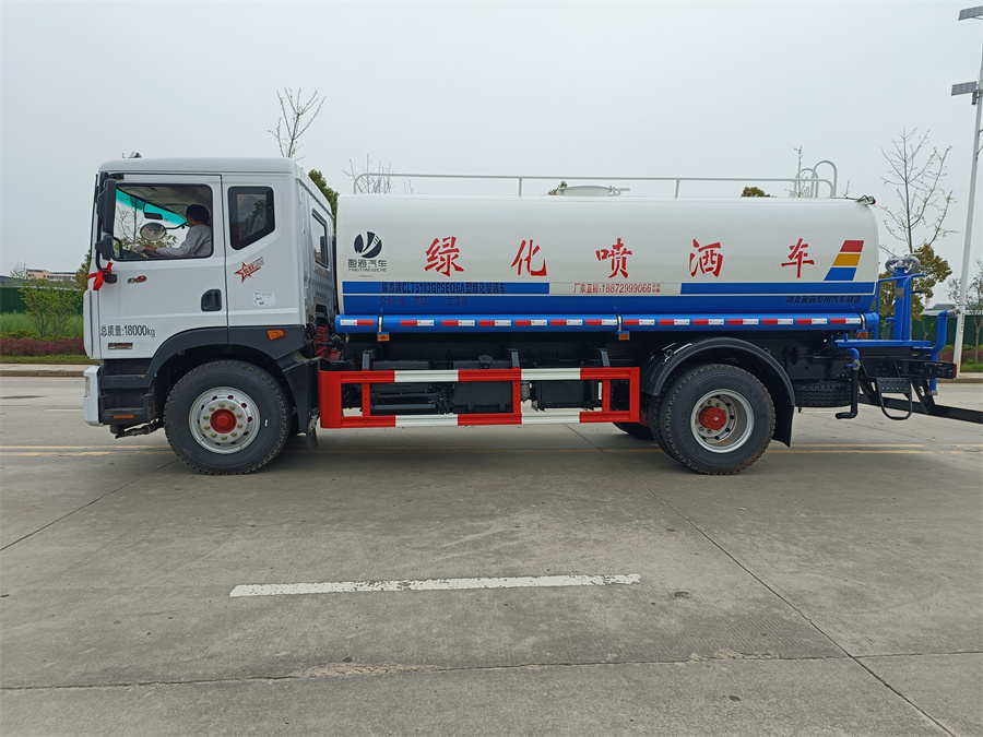 我公司產(chǎn)品標(biāo)配前噴(鴨嘴)、后沖、后灑、側(cè)噴、后置式工作 平臺,平臺上配置綠化水炮(可 360°旋轉(zhuǎn),既可以調(diào)成柱狀,也可 以調(diào)成霧狀,更可以調(diào)成直沖狀、大雨、中雨、小雨、毛毛雨),配 備優(yōu)質(zhì)大功率專用灑水泵(可自吸自排,可從河里或池塘抽水到罐體), 取力器,雜物過濾網(wǎng),消防接口,自流球閥系統(tǒng)、取力器、球閥、濾網(wǎng) 均為國家標(biāo)準產(chǎn)品,主管道加粗,法蘭墊、法蘭盤加厚,大通徑球閥。 整體具備性能優(yōu)良安全可靠、效率高、流量大、維修方便等特點