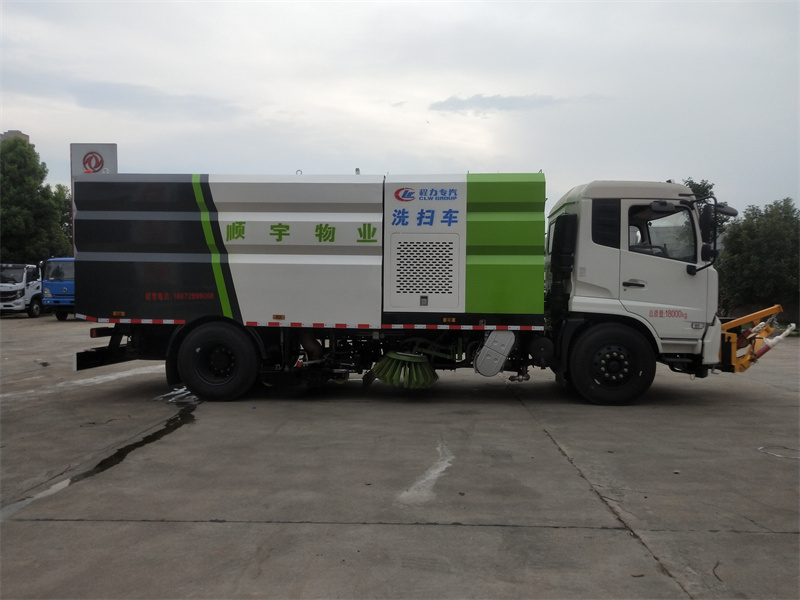 洗掃車(chē)是道路清掃車(chē)系列中的一款路面清掃保潔車(chē)輛。具有路面清洗、路面清掃路緣和路緣石立面洗刷、低壓沖洗、噴霧除塵等多功能。有"全洗掃"、 "左洗掃"、 "右洗掃"、 "全掃"、 多種作業(yè)模式可選擇。選擇"全洗掃"模式清洗廣場(chǎng)和路面,清洗效率高效果好,洗凈率達(dá)95%以上。選擇"左洗掃"或"右洗掃"模式清洗路面和路緣 。需要進(jìn)行路面清掃或路面保潔作業(yè)時(shí),可選擇掃路模式。需要噴霧除塵時(shí),可開(kāi)啟噴霧裝置,進(jìn)行噴霧除塵作業(yè)?梢韵駷⑺(chē)一樣對(duì)路面進(jìn)行低壓沖洗作業(yè)。