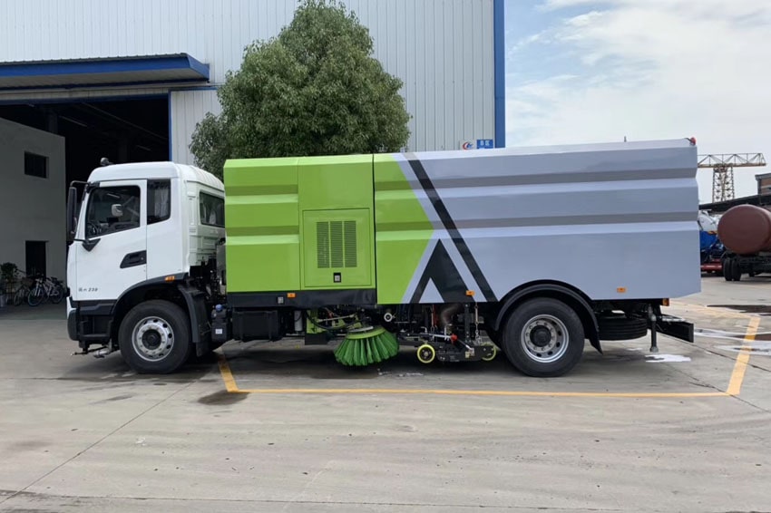 東風天錦洗掃車具有路面清洗、路面清掃路緣和路緣石立面洗刷、低壓沖洗、噴霧 除塵等多功能。有“全洗掃”、 “左洗掃”、 “右洗掃”、 “全掃”、 多種作 業(yè)模式可選擇。選擇“全洗掃”模式清洗廣場和路面,清洗效率高效果好,洗 凈率達 95%以上。選擇“左洗掃”或“右洗掃”模式清洗路面和路緣 。需要進 行路面清掃或路面保潔作業(yè)時,可選擇掃路模式。需要噴霧除塵時,可開啟噴霧裝置,進行噴霧除塵作業(yè)。可以像灑水車一樣對路面進行低壓沖洗作業(yè)。