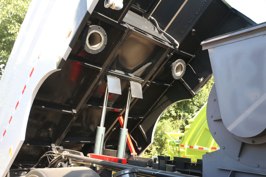 八、東風天錦洗掃車安全棒未放下時,智能系統(tǒng)將禁止垃圾箱回位,可有效防止維修時的事故發(fā)生。
