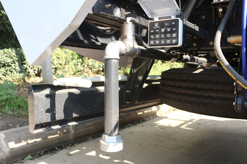 九、東風天錦洗掃車的污水箱內(nèi)采用大平面斜坡結(jié)構(gòu),最大卸料角度可達50度,更易于傾倒垃圾。污水箱內(nèi)設(shè)置了防溢滿報警裝置和高壓噴淋清洗裝置,防溢滿報警裝置可防止污水作業(yè)時從吸管溢出,造成二次污染;高壓噴淋清洗裝置在傾倒垃圾后可對污水箱進行自動清洗,大大減輕了操作人員的勞動強度。