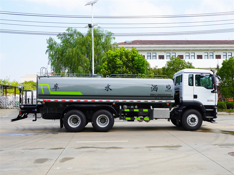 重汽汕德卡18噸灑水車產(chǎn)品標(biāo)配前噴(鴨嘴)、后沖、后灑、側(cè)噴、后置式工作 平臺,平臺上配置綠化水炮(可 360°旋轉(zhuǎn),既可以調(diào)成柱狀,也可 以調(diào)成霧狀,更可以調(diào)成直沖狀、大雨、中雨、小雨、毛毛雨),配 備優(yōu)質(zhì)大功率專用灑水泵(可自吸自排,可從河里或池塘抽水到罐體), 取力器,雜物過濾網(wǎng),消防接口,自流球閥系統(tǒng)、取力器、球閥、濾網(wǎng) 均為國家標(biāo)準(zhǔn)產(chǎn)品,主管道加粗,法蘭墊、法蘭盤加厚,大通徑球閥。 整體具備性能優(yōu)良安全可靠、效率高、流量大、維修方便等特點(diǎn)。