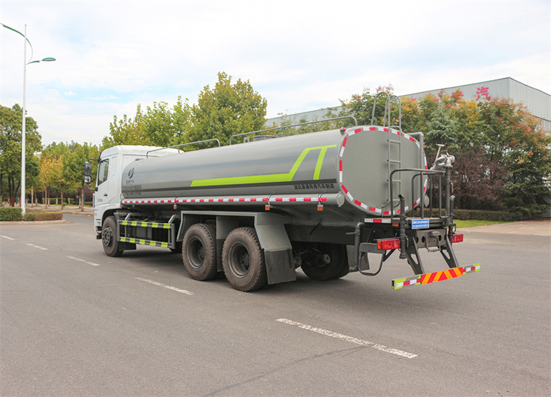 東風(fēng)20噸灑水車標(biāo)配前噴(鴨嘴)、后 對(duì)沖、后灑、側(cè)噴、后置式工作平臺(tái),平臺(tái)上配置綠化水炮(可 360°旋轉(zhuǎn),既 可以調(diào)成柱狀,也可以調(diào)成霧狀),配備優(yōu)質(zhì)大功率專用灑水泵(可自吸自排, 可從河里或池塘抽水到罐體),取力器,雜物過濾網(wǎng),消防接口,自流球閥系統(tǒng)、 取力器、球閥、濾網(wǎng)均為國(guó)家標(biāo)準(zhǔn)產(chǎn)品,主管道加粗,法蘭墊、法蘭盤加厚, 大通徑球閥。整體具備性能優(yōu)良安全可靠、效率高、流量大、維修方便等特點(diǎn)