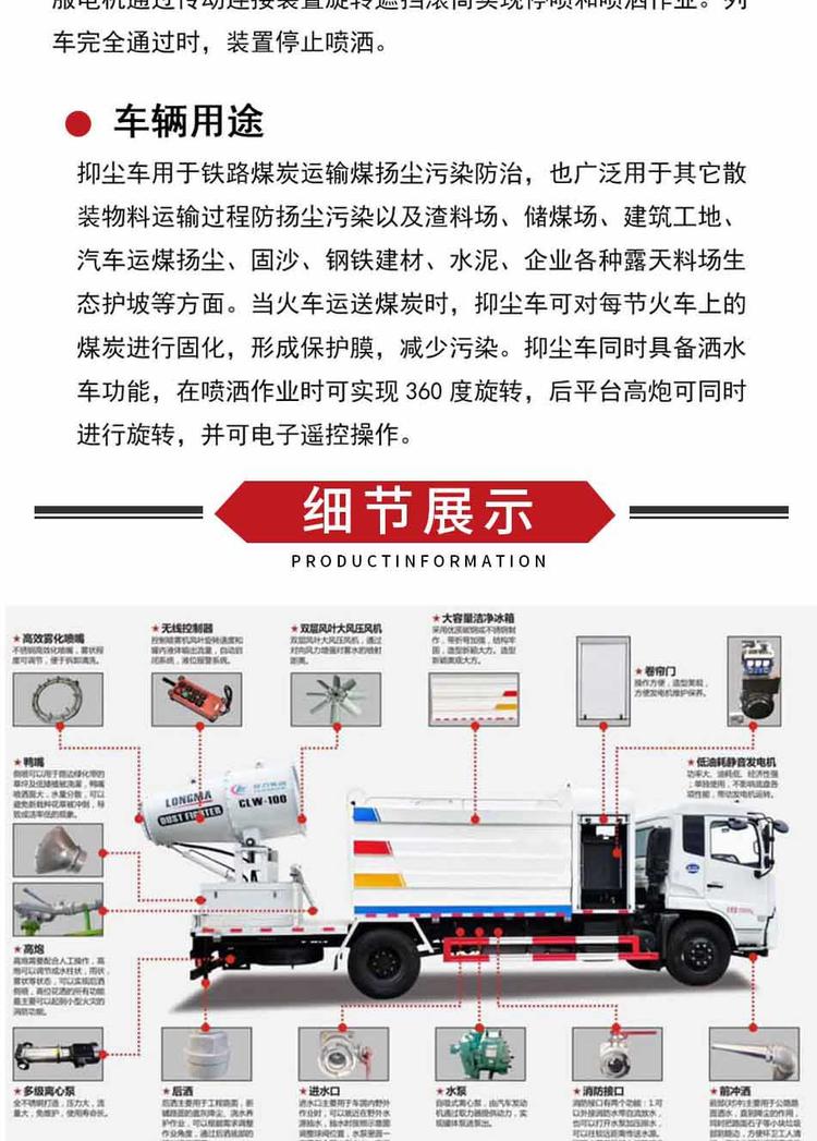 灑水車性能簡介:吸程≧7米,灑水寬度≧14-16米,射程≧25-40米,引水時間<5min,流量60m3/h。前沖(噴)、后灑、帶側噴(花灑)、帶后工作平臺、平臺上安裝綠化灑水高炮(炮噴射形狀可調節:直沖、大雨、中雨、毛毛雨、霧狀、可連續調節,360°旋轉),配消防接口,自流閥,濾網,帶自吸自排功能。