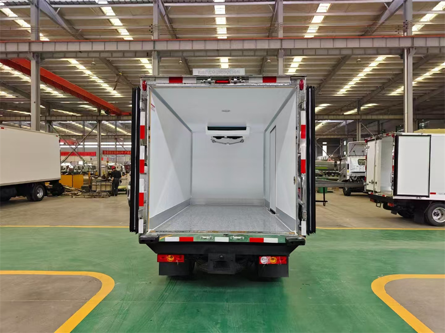 廂體采用內外玻璃鋼板材制作,中間填充8cm 厚高密度保溫材料,底板選用加厚型防滑花紋鋁板,鋁合金型材包邊,不銹鋼門鎖件,后雙開門,帶單側開門,匹配零下15度制冷機組。其余按冷藏車標配制作。提供機動車上戶手續(機動車合格證、上戶發票、車輛保修手冊、隨車工具)。