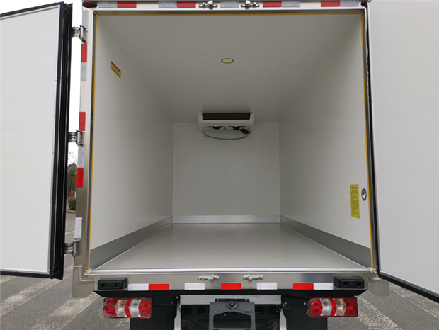 江淮帥鈴E 4米2冷藏車廂體配置為:采用斷橋隔熱工藝,整體框架結(jié)構(gòu)制作,廂體內(nèi)、外壁材料為玻璃鋼板,采用高密度保溫層,廂板內(nèi)帶有骨架,廂體厚度80mm,門框,門飾件、包角全部使用不銹鋼材質(zhì)。最新款鋁合金包邊型材,廂體內(nèi)采用LED照明燈及廂體示寬燈;門框密封條為橡膠材質(zhì),后門梁帶加厚防撞塊,加厚型不銹鋼鉸鏈及鎖件。車體副梁采用510L高強度鋼制作,底板為鋁花紋板,車廂后門帶一個上車扶手,其余標配;