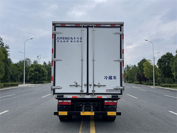 東風(fēng)新能源冷藏車廂體配置為:采用斷橋隔熱工藝,整體框架結(jié)構(gòu)制作,廂體內(nèi)、外壁材料為玻璃鋼板,采用高密度保溫層,廂板內(nèi)帶有骨架,廂體厚度80mm,門框,門飾件、包角全部使用不銹鋼材質(zhì)。最新款鋁合金包邊型材,廂體內(nèi)采用LED照明燈及廂體示寬燈;門框密封條為橡膠材質(zhì),后門梁帶加厚防撞塊,加厚型不銹鋼鉸鏈及鎖件。車體副梁采用510L高強(qiáng)度鋼制作,底板為鋁花紋板,車廂后門帶一個(gè)上車扶手,其余標(biāo)配;