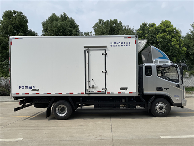 福田奧鈴3米7冷藏車廂體配置為:采用斷橋隔熱工藝,整體框架結構制作,廂體內、外壁材料為玻璃鋼板,采用高密度保溫層,廂板內帶有骨架,廂體厚度80mm,門框,門飾件、包角全部使用不銹鋼材質。最新款鋁合金包邊型材,廂體內采用LED照明燈及廂體示寬燈;門框密封條為橡膠材質,后門梁帶加厚防撞塊,加厚型不銹鋼鉸鏈及鎖件。車體副梁采用510L高強度鋼制作,底板為鋁花紋板,車廂后門帶一個上車扶手,其余標配;