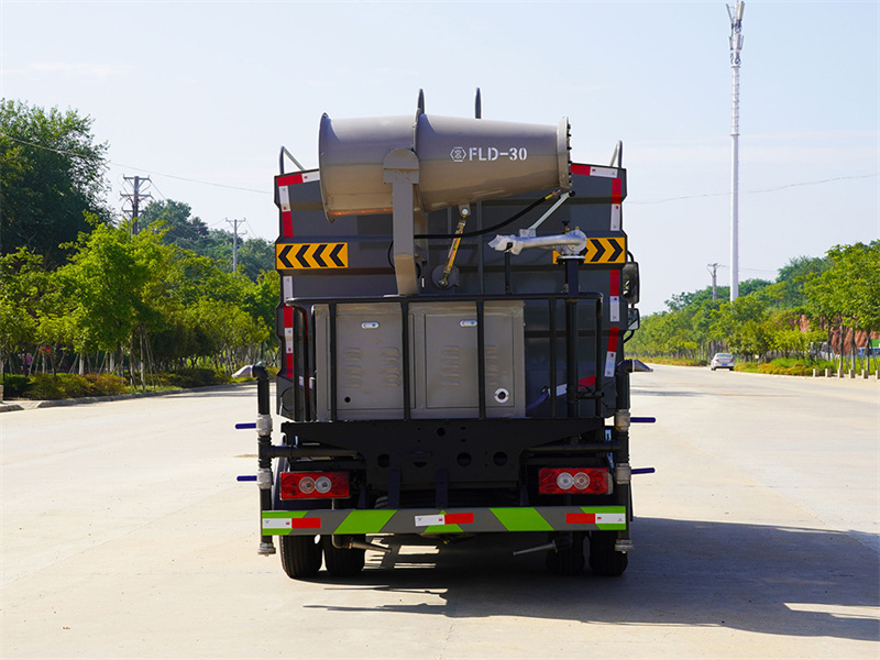 我公司產品標配前噴(鴨嘴)、后沖、后灑、側噴、后置式工作平臺,平臺上配置綠化水炮(可 360°旋轉,既可以調成柱狀,也可以調成霧狀,更可以調成直沖狀、大雨、中雨、小雨、毛毛雨),配備優質大功率專用灑水泵(可自吸自排,可從河里或池塘抽水到罐體),取力器,雜物過濾網,消防接口,自流球閥系統、取力器、球閥、濾網均為國家標準產品,主管道加粗,法蘭墊、法蘭盤加厚,大通徑球閥。整體具備性能優良安全可靠、效率高、流量大、維修方便等特點