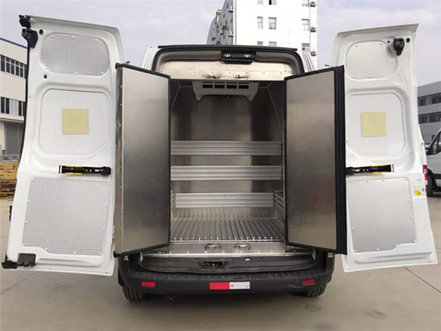 福特全順汽油版疫苗冷鏈車車廂配置: 保溫廂內(nèi)板為304不銹鋼板,夾保溫層制作,廂體底板和四周廂板安裝通風(fēng)槽。廂內(nèi)帶LED照明燈,溫濕度顯示記錄儀,紫外線消毒燈,外場照明燈燈配置。不銹鋼門框,鎖件。