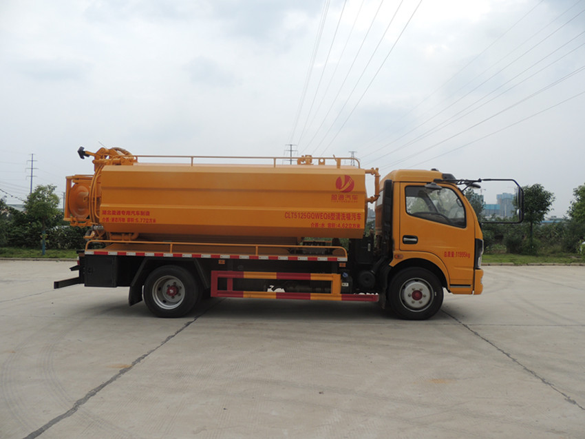 吸污車底盤配置: 采用東風原廠多利卡底盤,白色駕駛室(顏色可選),萬里揚6檔變速箱,軸距3800mm, 245真空胎,原廠abs,帶方向助力,離合助力器,氣剎制動,帶冷暖空調。