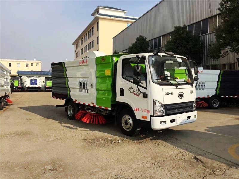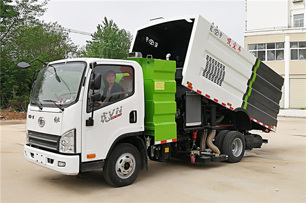 解放虎VN掃路車,水箱容積1.5方,積塵箱容積4方,江鈴78馬力副發動機,免維護自分離式離合器,免維護風機,不銹鋼水箱,不銹鋼垃圾箱,尾部LED箭頭燈。解放虎VN駕駛室,軸距3300,選裝全柴95或濰柴揚動95/110馬力發動機,5檔變速箱,130沖焊后橋,7.00R16鋼絲胎。