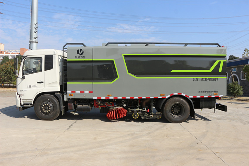 1.CLT5180TXSD6型洗掃車適用于城市道路、高速公路、廣場、機場、碼頭、遂道、橋梁、隔離墻避、路緣和路緣石立面的機械化清洗、清掃、噴霧降塵等清潔作業。具有路面清洗、路面清掃、路緣清洗、路緣和路緣石立面洗刷、低壓沖洗、噴霧除塵等多功能。有“全洗掃”、 “右洗掃”、 “全掃”、 “右掃”4種作業模式可選擇。選擇“全洗掃”模式清洗廣場和路面,清洗效率高效果好,洗凈率達90%以上。選擇“左洗掃”或“右洗掃”模式清洗路面和路緣、洗刷路緣石立面。需要進行路面清掃或路面保潔作業時,可選擇掃路模式。需要噴霧除塵時,可開啟噴霧裝置,進行噴霧除塵作業。可以像灑水車一樣對路面進行低壓沖洗作業。