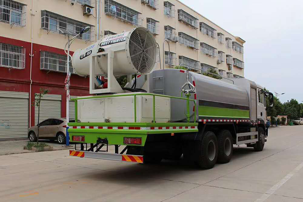 整車說明:專用裝置為抑塵霧炮,用于城市抑塵.整車長/軸距/后伸對應關系為(mm):10600/3900+1350/700,10625/3875+1400/700,11000/4300+1350/700,11220/4350+1350/920,11245/4275+1400/920,11520/4600+1350/920,11545/4575+1400/920,11600/4300+1350/1300,11700/5000+1350/700,11725/4975+1400/700.防護材料:Q235A碳鋼,連接方式:左右側面及后部防護均采用焊接連接,后部防護斷面尺寸(mm):120×50,后部防護離地高度(mm):500.ABS系統控制器生產企業/型號為威伯科(上海)管理有限公司/4460046300.當整備質量為(kg):14180時,軸距為(mm):3900+1350,3875+1400,4275+1400,4300+1350,4350+1350,當整備質量為(kg):15500時,軸距為(mm):4600+1350,4575+1400,4975+1400,5000+1350.隨底盤選裝駕駛室.選裝不同的霧炮圖片.