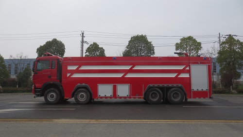 豪沃24噸水罐消防車采用重汽豪沃底盤改裝,平頭排半駕駛室,液壓翻轉(zhuǎn),整車結(jié)構(gòu)緊湊,方便靈活,動力性能好,車速高,能自由進出鄉(xiāng)村狹窄道路及小區(qū),具有消防車的全套消防功能,上裝箱體的上裝骨架全部采用引進歐洲技術(shù)生產(chǎn)的鋁合金型材制造,整車的重量減少,機動性能和整車載重量提高。除了裝備消防水泵及器材以外,還設(shè)有較大容量的貯水罐及水槍、水炮等。可將水和消防人員輸送至火場獨立進行撲救火災(zāi)。也可以從水源吸水直接進行撲救,或向其他消防車和滅火噴射裝置供水。在缺水地區(qū)也可作供水、輸水用車,主要適用于大中城鎮(zhèn)、鄉(xiāng)村狹窄街道、城市小區(qū)、繁忙的批發(fā)市場等場所的一般物質(zhì)滅火,閑暇時可用于園林噴灌、道路清灑。