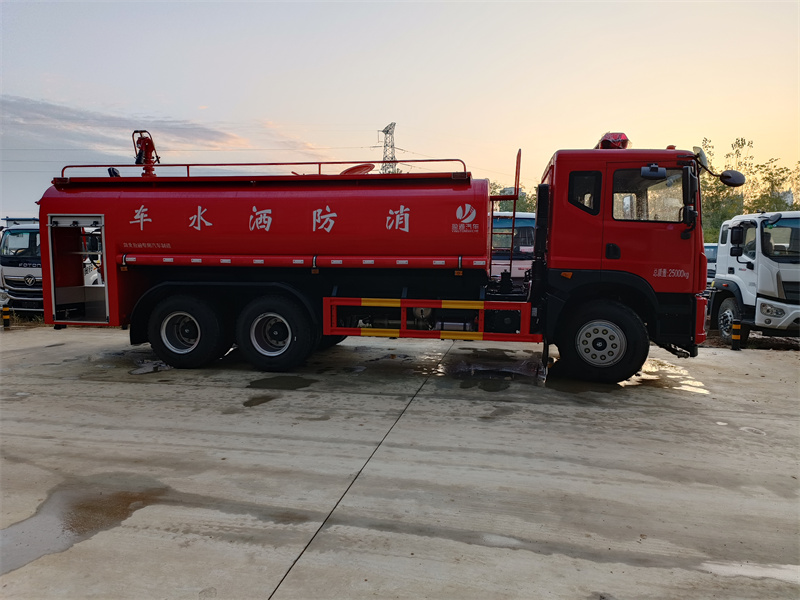 注:車輛顏色可根據(jù)需求定 一. 產(chǎn)品簡述 消防灑水車參數(shù) 消防灑水車,又稱消防灑水兩用車、灑水消防兩用車、森林消防灑水車、學校消防灑水車、機 場消防灑水車、社區(qū)消防灑水、街道及鄉(xiāng)鎮(zhèn)和鄉(xiāng)村消防灑水功能。是一款集消防車和灑水車于一體的 兩用車,是介于消防車與灑水車之間,具有消防灑水一體化用途,與消防車相比雖缺少器材箱,但與 消防車的射程相同,具有同樣的消防功能。 功能介紹:與灑水車相比,繼承了灑水車的全部功能,同時也彌補了灑水車射程小,壓力小等 問題。消防灑水車除了裝備消防水泵及器材以外,還設有較大容量的貯水罐及水槍、水炮等。可將水 和消防人員輸送至火場獨立進行撲救火災。它也可以從水源吸水直接進行撲救,或向其他消防車和滅 火噴射裝置供水。優(yōu)于消防車的功能:因為沒有消防車器材箱,底盤高度及車輛寬度更適應山間、鄉(xiāng) 鎮(zhèn)、鄉(xiāng)村的路況,是森林消防、鄉(xiāng)鎮(zhèn)和鄉(xiāng)村消防的有利消防工具。