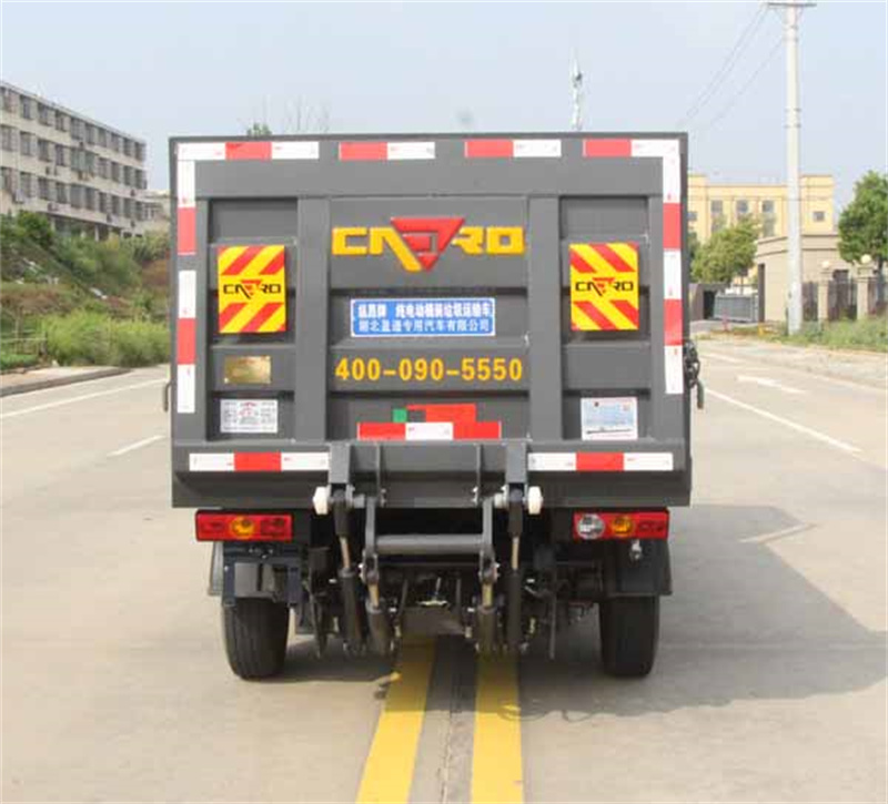 該車用于桶裝垃圾收集轉運,專用裝置:貨廂和后尾板升降機構;液壓尾板收起狀態的水平長度為180mm;尾板質量為200kg;蓄電池為磷酸鐵鋰蓄電池,總成型號:L125S02,總成生產企業為寧德時代新能源科技股份有限公司,單體生產企業為寧德時代新能源科技股份有限公司.驅動電機類型為永磁同步電機,型號為FTTBP070B,額定功率為35kW,峰值功率為75kW,生產企業為北汽福田汽車股份有限公司.ABS型號是YF9,生產企業是武漢元豐汽車電控系統股份有限公司.該車可選裝直接供電式ETC車載裝置,隨底盤選裝不裝晝間行車燈裝前霧燈,選裝不裝晝間行車燈和前霧燈.該車整備質量不包含備胎、隨車工具和滅火器.貨箱質量為:510kg,貨箱材質為:Q235鋼板,底板厚度為3mm,前板、側板厚度均為2mm,折彎成型后厚度為40mm.