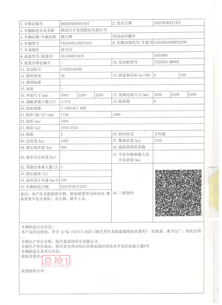 陜汽智云S300新能源冷藏車(K8-140.41度電)陜汽智云純電動冷藏車