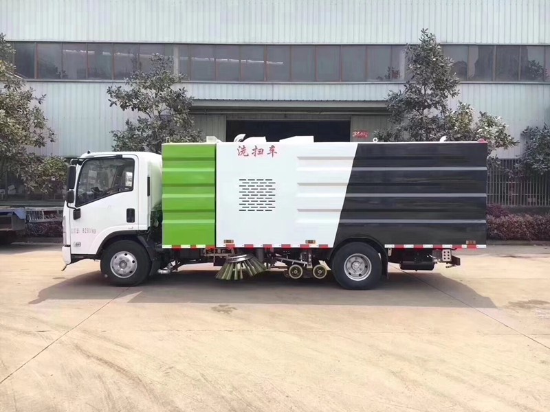 慶鈴五十鈴600P車身,單排前翻駕駛室,軸距3815mm,五十鈴130馬力發動機,5檔變速箱,油剎, 帶方向助力,空調,7.00R16真空輪胎。上裝: 中置2掃盤,中置寬吸嘴,康明斯140馬力副發動機, 意大利馬達;德國高壓水泵(前沖/側噴/中噴/后噴霧/沖洗水槍/垃圾箱自潔裝置); 萬向高壓路沿清洗噴頭,威龍低壓泵(前沖);不銹鋼垃圾箱;不銹鋼管高壓管路;德國控制器; 韓國控制箱;PLC一鍵控制;尾部LED箭頭燈;機油、垃圾箱、水箱均帶防溢低水位報警裝置; 倒車及洗掃狀態室內監視器。18m高壓沖洗卷盤。2、清掃寬度3.5m;清洗壓力10MPa;吸入粒度φ110mm