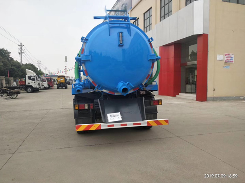 福田8噸吸污車該車用途為吸污,主要裝置為污罐;罐體有效容積:7.28立方米,運輸品名:液態(tài)污物,罐體尺寸(mm): 直段長4100,直徑1500;防護材料:Q235A碳鋼 ,連接方式:左右側面及后下部防護均采用焊接連接,后部防護斷面尺寸(mm):150×50,后部防護離地高度(mm):480. 整車長/軸距對應關系為(mm):6950/3800,7350/4200;ABS控制方式為4S/4M,ABS型號為CM4XL-4S/4M, 生產廠家為廣州瑞立科密汽車電子股份有限公司;選裝車輛后部圖片. |