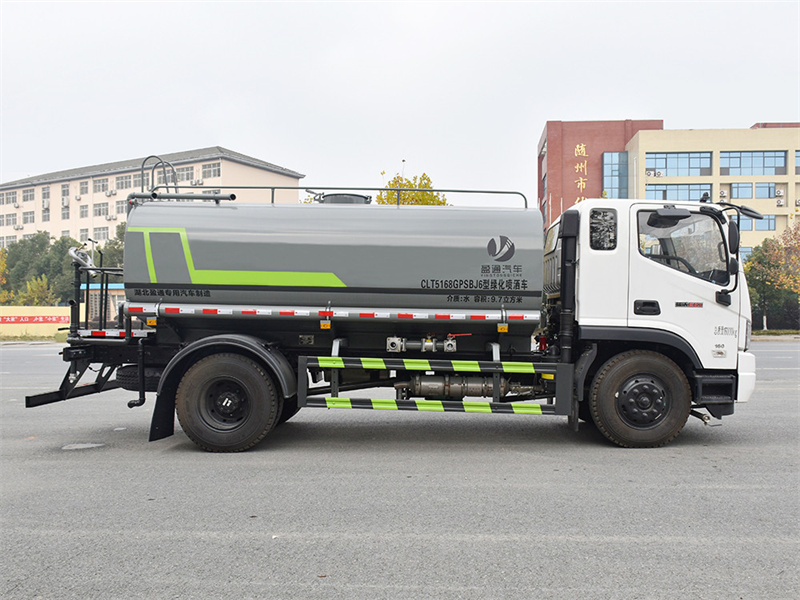 福田新款12-15噸灑水車產品標配前噴(鴨嘴)、后沖、后灑、側噴、后置式工作 平臺,平臺上配置綠化水炮(可 360°旋轉,既可以調成柱狀,也可 以調成霧狀,更可以調成直沖狀、大雨、中雨、小雨、毛毛雨),配 備優質大功率專用灑水泵(可自吸自排,可從河里或池塘抽水到罐體), 取力器,雜物過濾網,消防接口,自流球閥系統、取力器、球閥、濾網 均為國家標準產品,主管道加粗,法蘭墊、法蘭盤加厚,大通徑球閥。 整體具備性能優良安全可靠、效率高、流量大、維修方便等特點